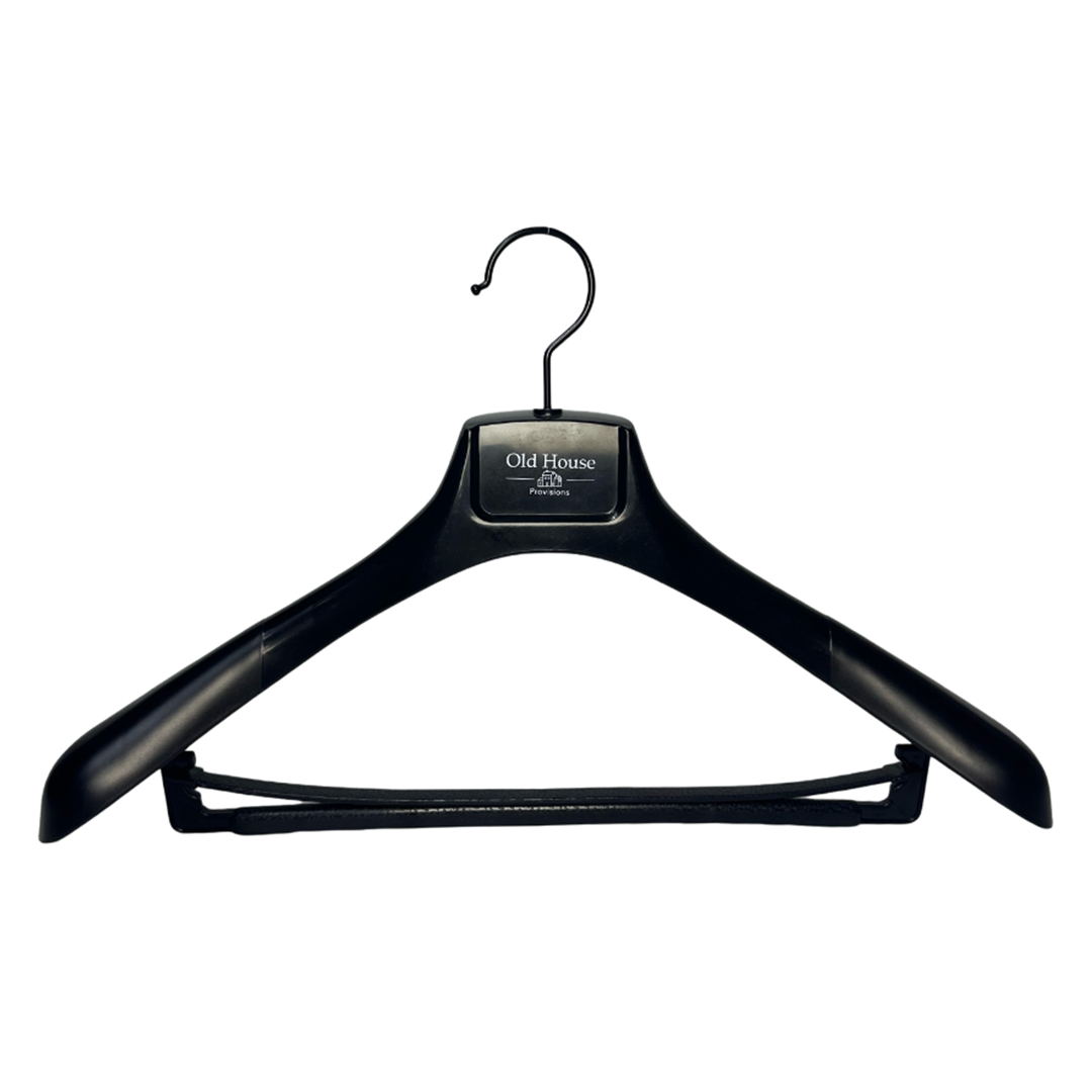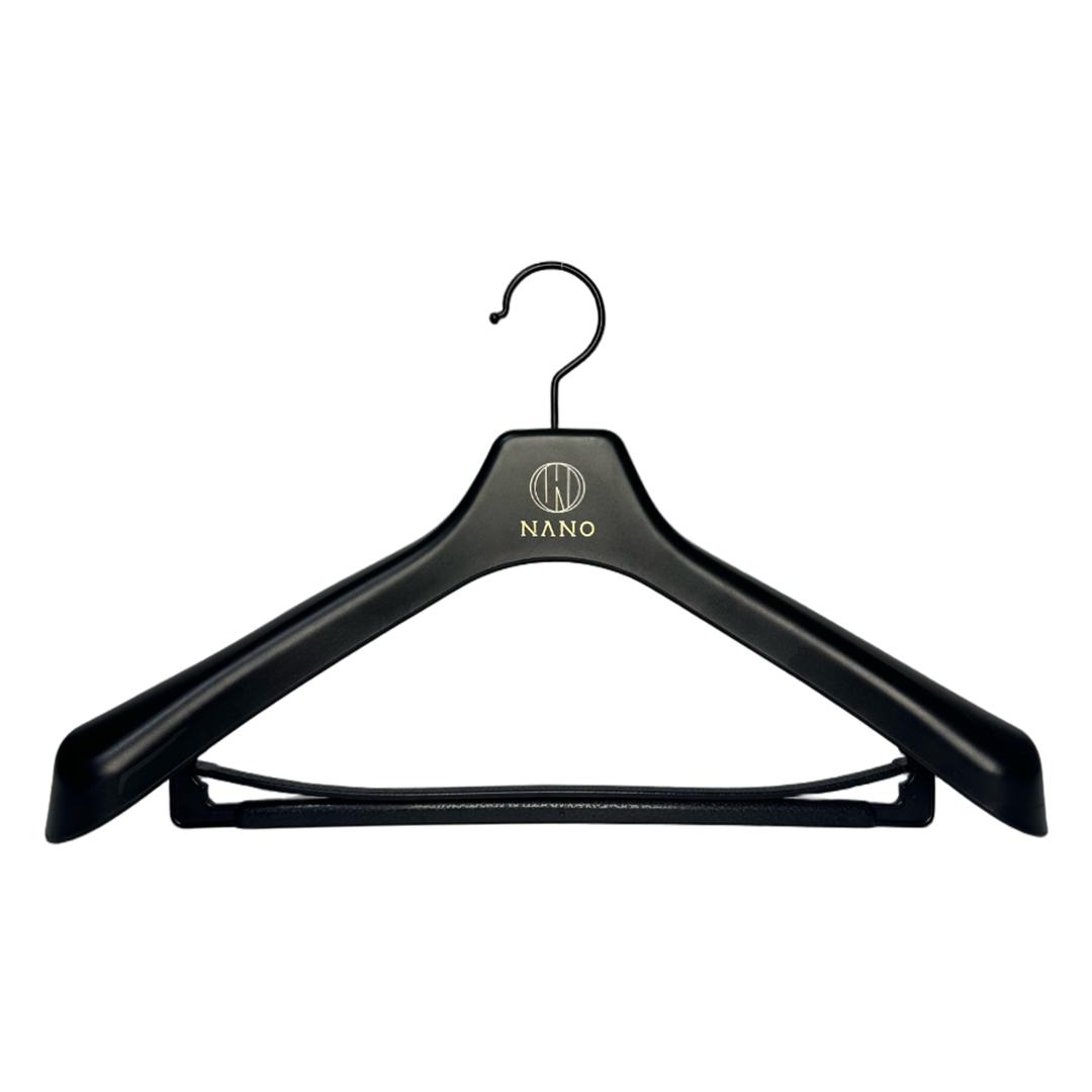 Our wholesale clothing hangers versatile design fits all garment types: suits, wedding gowns, casual apparel, and trousers. Custom logo options via printing/embossing