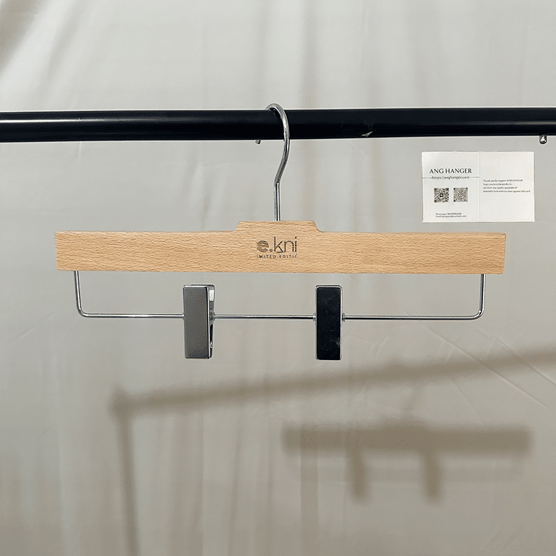 Custom Natural Wooden Pants Hangers – With Pants Clips, Custom Logo for Retail