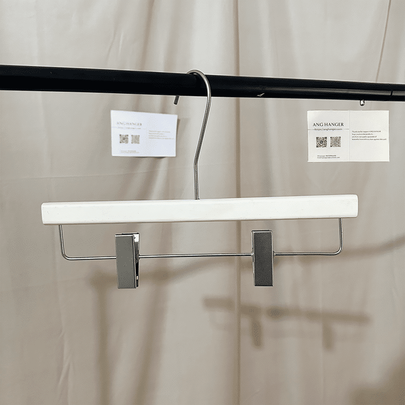 Boutique-Ready White Wood Hangers Bulk – Pants Hanger, Metal Pant Clips, Custom Brand Logos for Apparel Stores